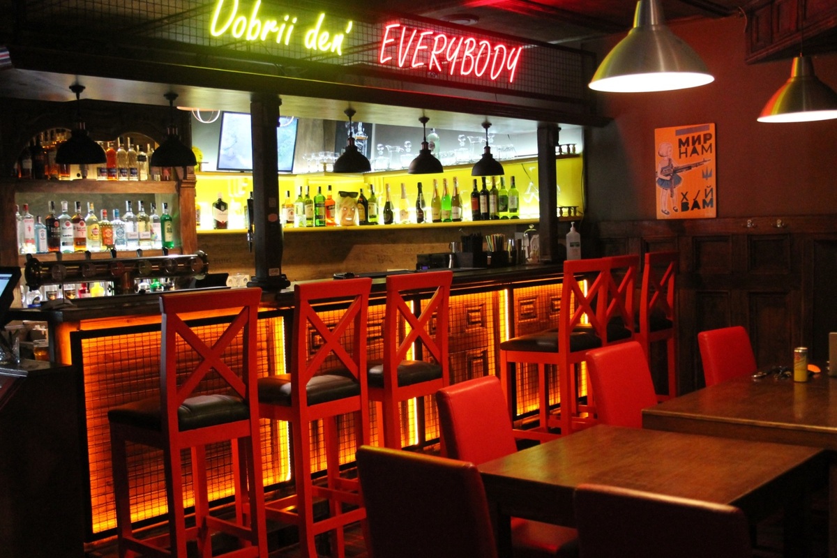 Вечером в пабе выступают музыканты. После победы хотят организовать здесь квизы и стендап-вечера.