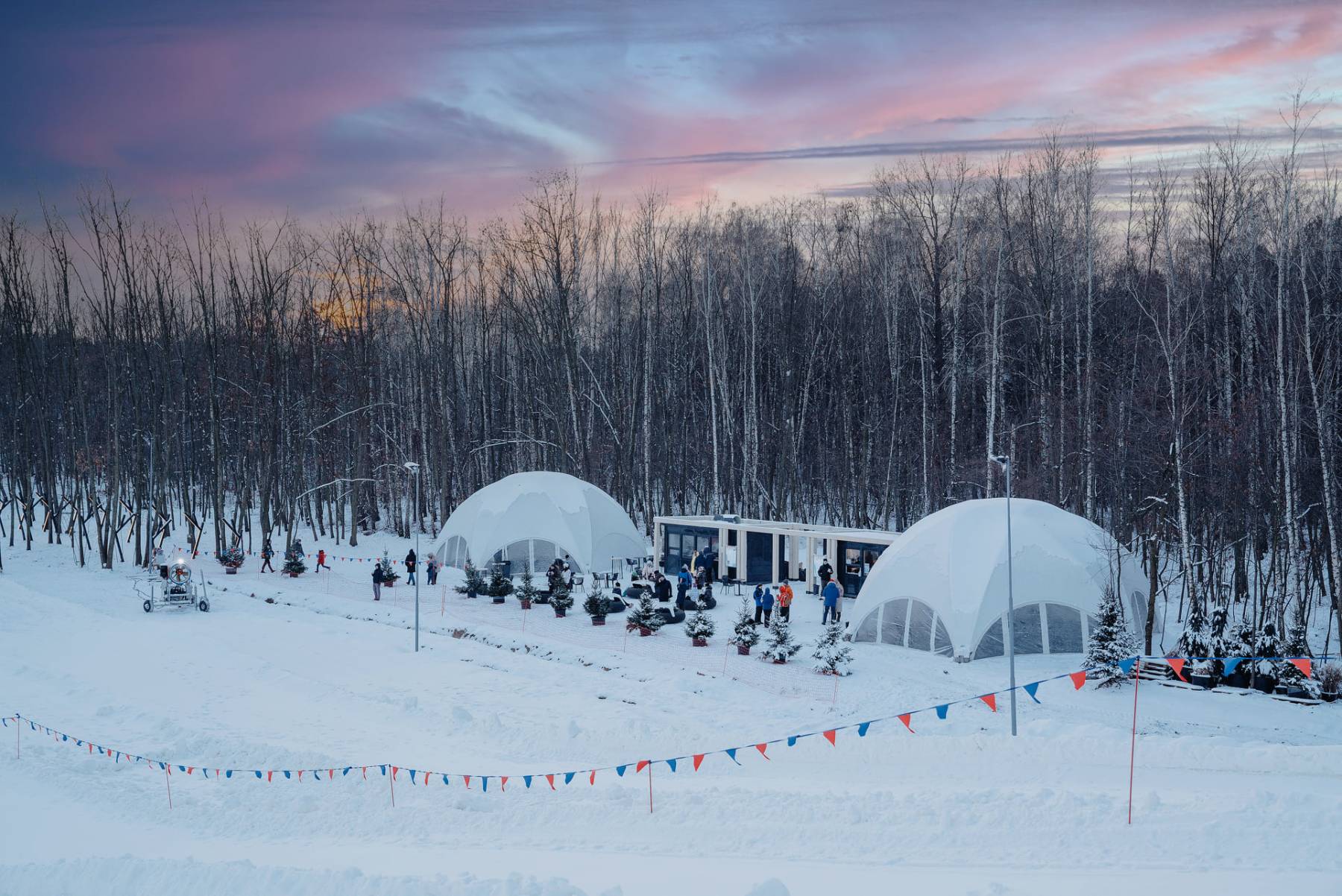 На территории обустроили сноутюбинговые горки, качели, фотозоны и фудкорты.