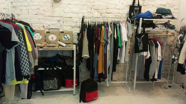 Здесь можно купить парки и дождевики S-cape, рубашки и платья CARDO, одежду с этническими элементами Nenka, рюкзаки Phestyn, худи и футболки Tsukor, платья MustHave, носки Sammy Icon, футболки и свитера от Alexander Dets с рисунками мамая, казаков, персонажей в национальных костюмах. В целом собрано около 50 брендов.