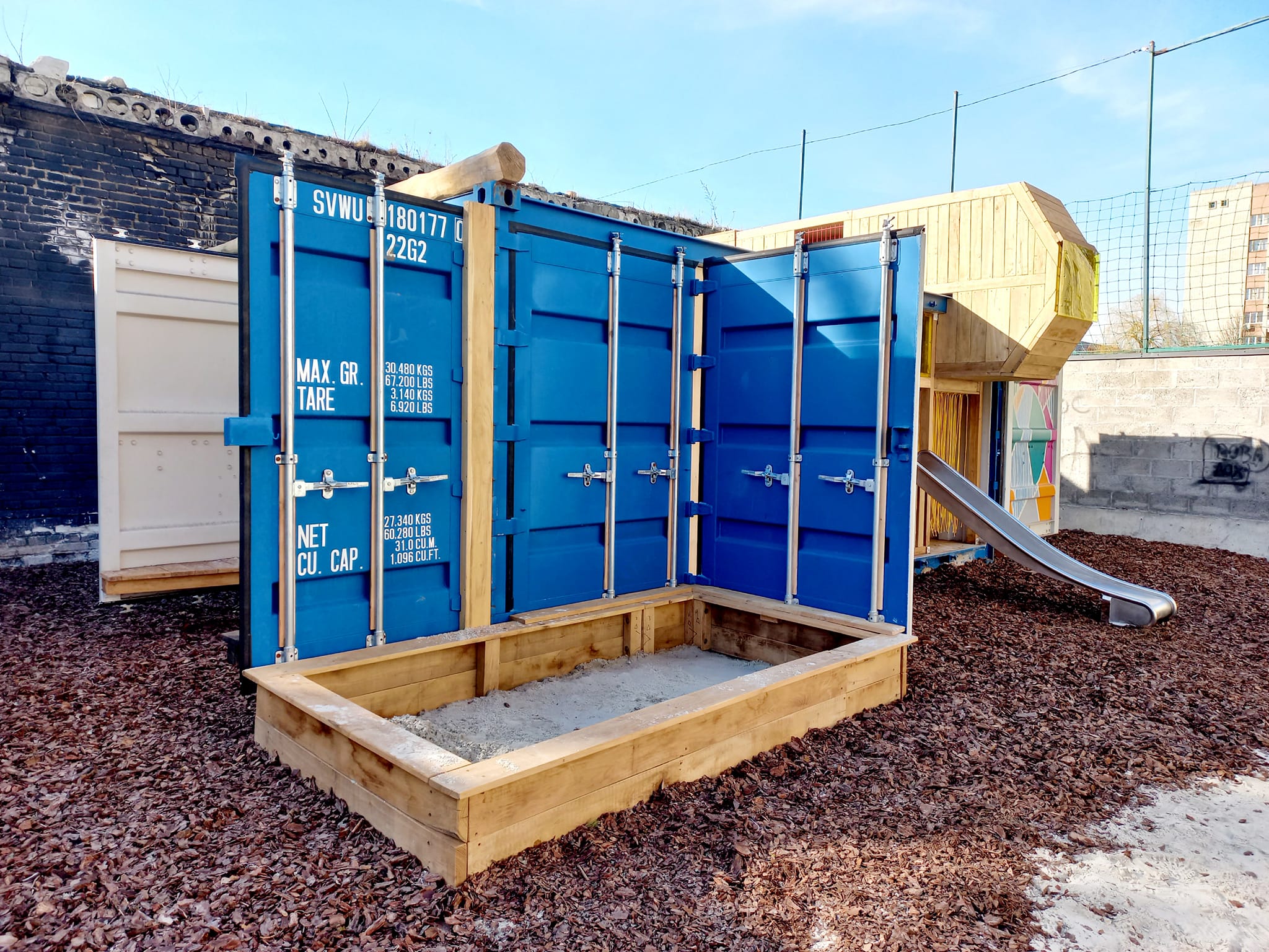 Во львовском пространстве для внутренне перемещенных украинцев Urban Camp установили детскую площадку из морского контейнера.