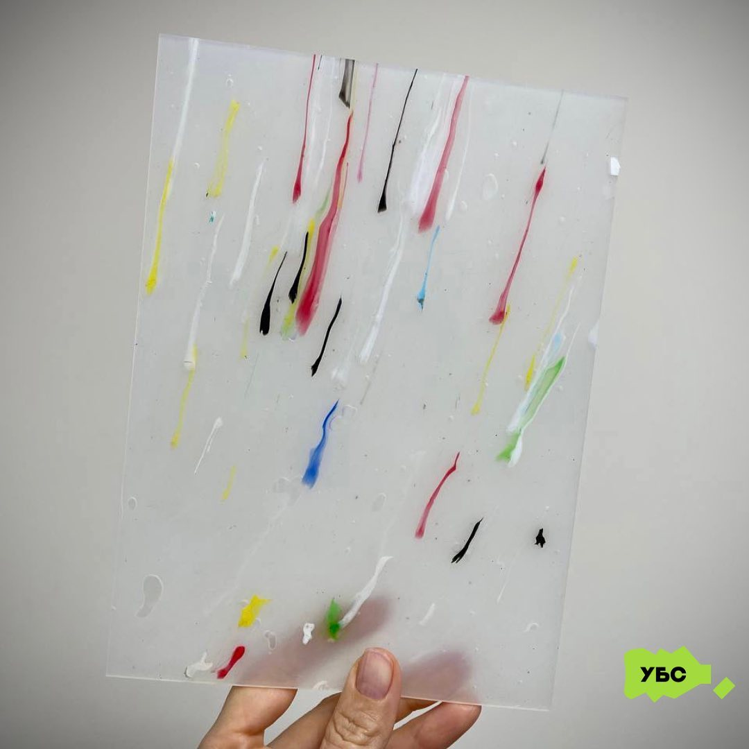 «2 недели мы экспериментировали с запеканием тонкой 1,5 мм плиты, с разными видами пластика, цветами и рисунками, которые под давлением горячего пресса всегда получаются уникальными», – рассказывают в мастерской.