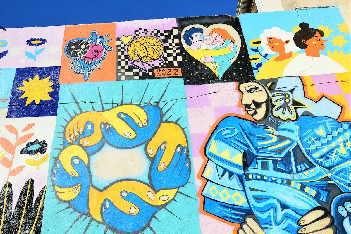 Украинки Sestry Feldman создали в Бельгии мурал, посвященный годовщине полномасштабного вторжения