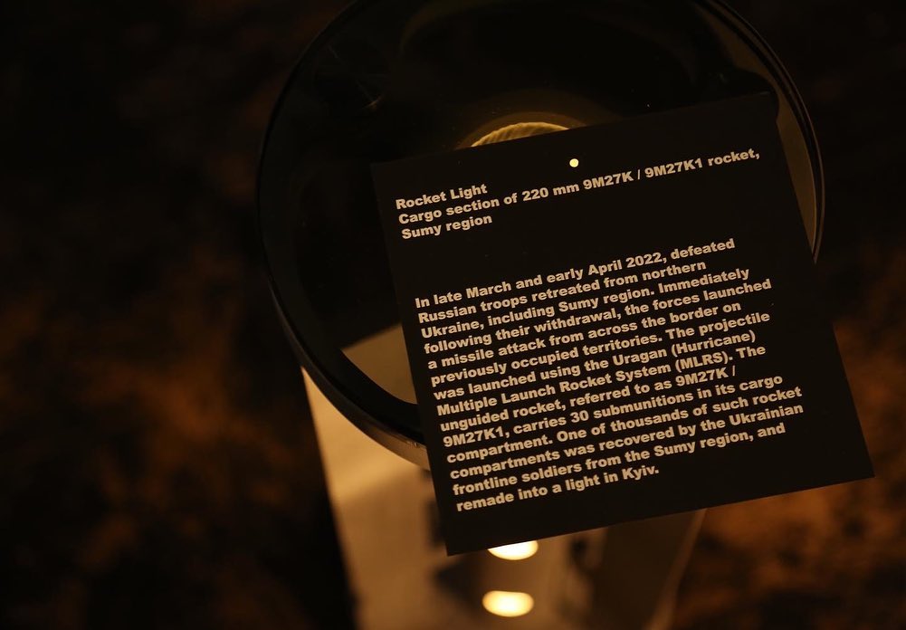Украинский художник и основатель бренда Memory Box Дмитрий Петькун создал лампу из снаряда российской боевой установки «Ураган».