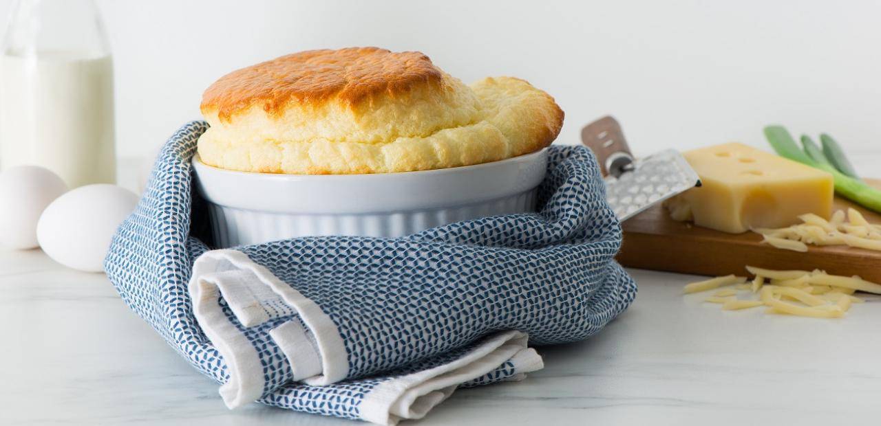 - Формочки для суфле смазать маслом и посыпать панировочными сухарями, затем заполнить их пюре с ветчиной и посыпать тертым сыром.