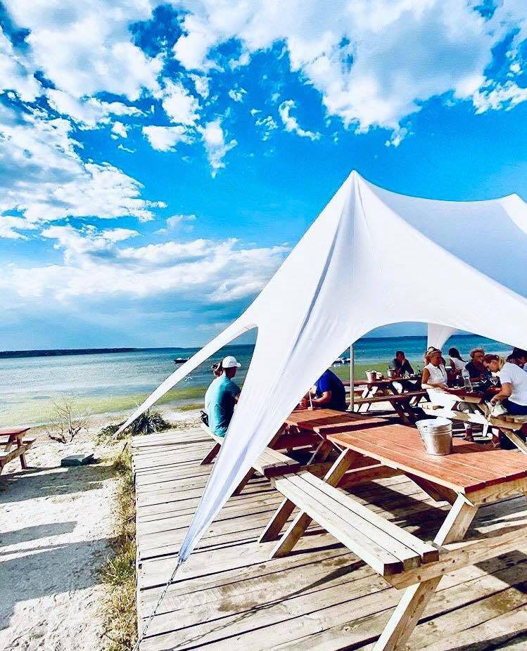 Вход на территорию бесплатный. Устрицы стоят от 30 до 50 грн за штуку. Готовят также блюда из морепродуктов: уху можно заказать за 70 грн, плов с мидиями за 100 грн, рапаны в сливочном соусе за 170 грн.