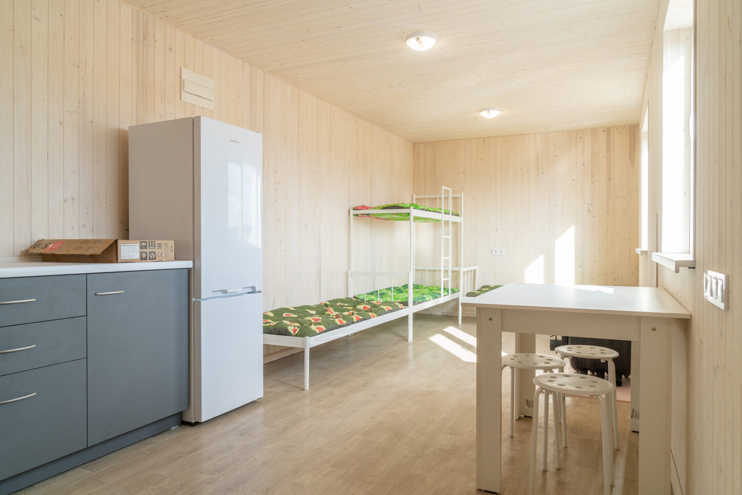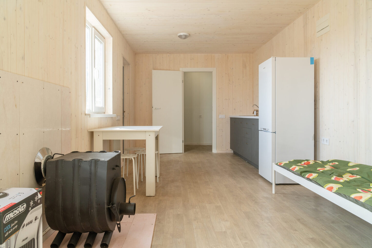 После установки они готовы к эксплуатации. Площадь составляет 25 квадратных метров. Дом оборудован всем необходимым, в частности, здесь есть печь на дровах, кондиционер, холодильник, туалет и душ, кухней. Кроме того, он оборудован мебелью – кроватями, столом и стульями.