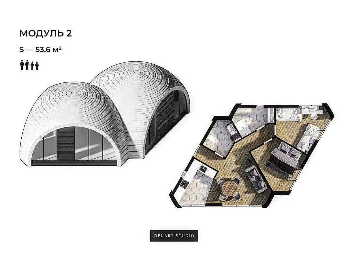 Разработка такого жилья является личной инициативой Dekart Studio. Среди компаний, которые могут производить облегченные энергосберегающие панельные сооружения, студия выбрала «СК БУДОВА».