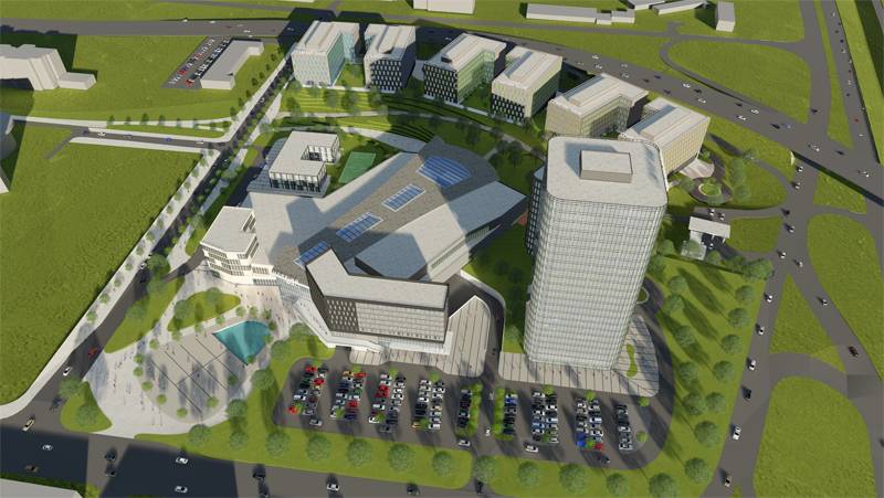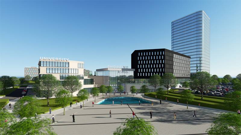 Здесь планируют построить комплекс из шести 8-этажных офисных зданий, высотный офисный центр с корпусами на 11 и 22 этажа и подземным паркингом. А также торговый центр, отель и детский сад.
