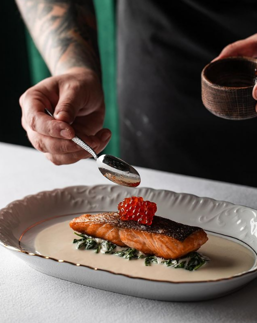 Ціни: сирники з рікоттою, карамеллю та ягодами — 255 грн, круасан з шинкою — 240 грн, татакі тунець - 470 грн, рис у тайському стилі — 175 грн, грецький салат — 365 грн, стейк Ті-боун — 560 грн, рол з крабом та креветкою — 625 грн, мільфей — 235 грн.