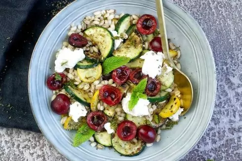 Салат із вишнями та перловкою