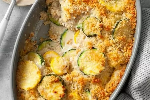 Кабачкова лазанья — низьковуглеводна та безглютенова варіація популярної італійської страви. Замість листів лазаньї — скибки кабачків, а замість соусу бешамель, який готується на основі борошна, сирний крем з рикоти й пармезану. Загалом, це надзвичайно ефективний і смачний спосіб використати за один раз велику кількість кабачків, які вам передадуть добрі родичі.