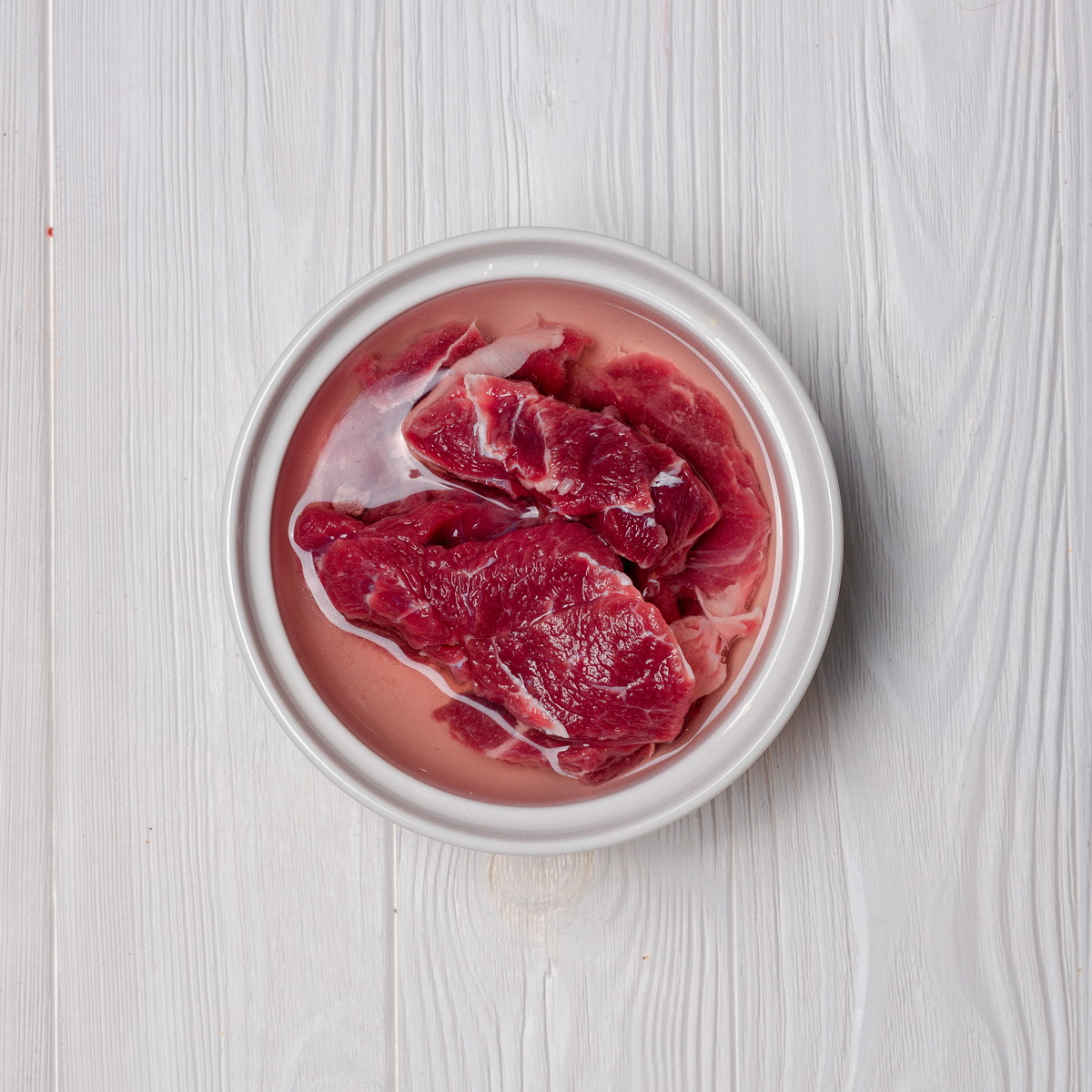 Вилий воду до глибокої ємності, додай сіль та перемішай, щоб розчинилася. Поріж на шматочки яловичину та занур її до розчину, залиш на 8 годин. За 8 годин пора смажити та насолоджуватися!