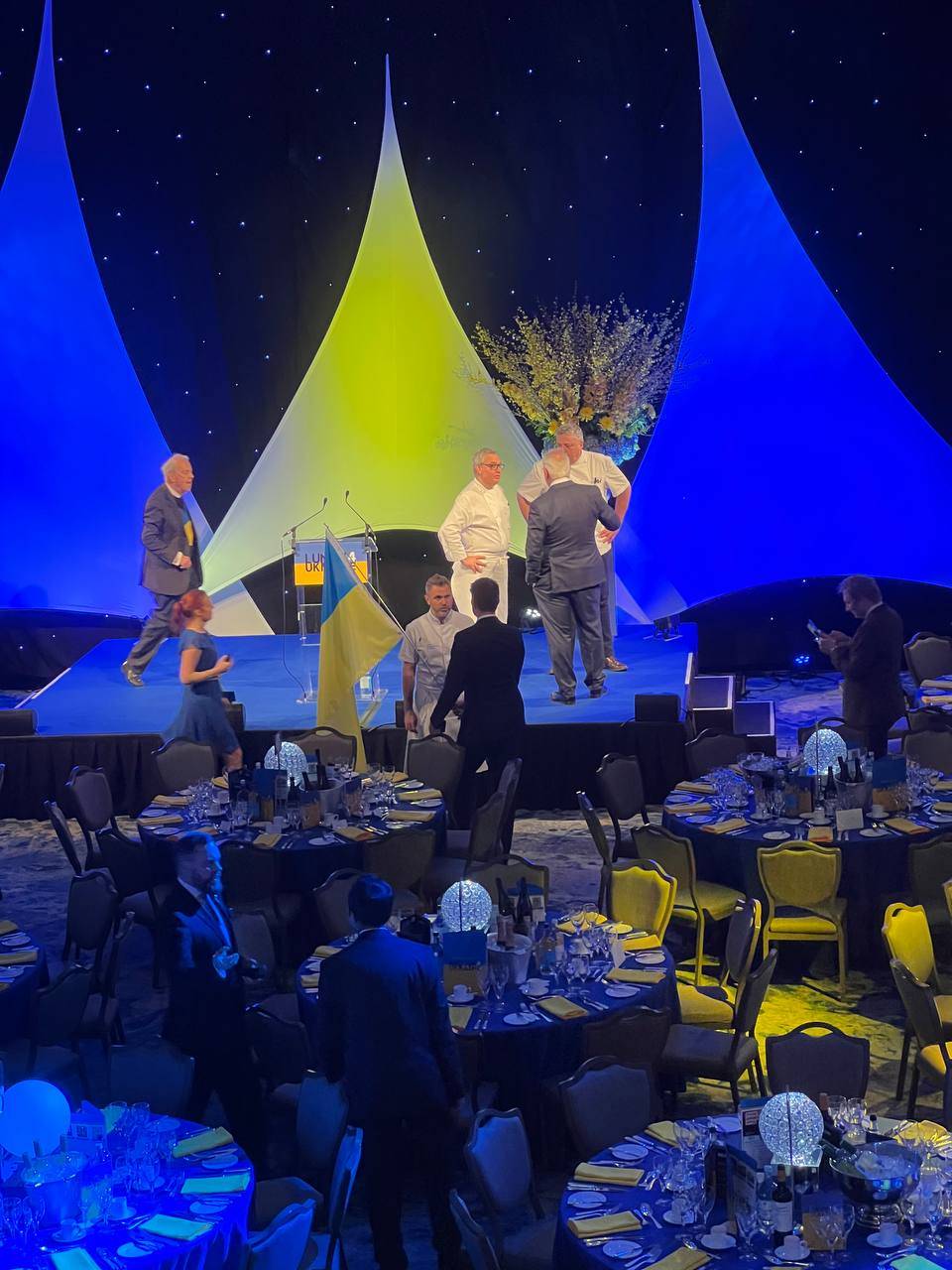 Тепер тут стоїть черга з зіркових кухарів, які хочуть провести зі мною якусь спільну подію задля підтримки України. І це не може не радуватиОдин з найбільших викликів – благодійна вечеря в найбільшій залі Великої Британії Grosvenor House JW Marriott. Перед цим там проводили гала-вечір BAFTA.