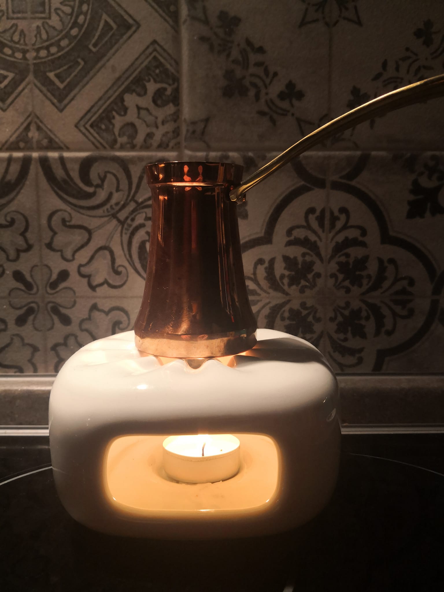 З Німеччини ж ми привезли керамічну підставку зі свічкою, на якій зараз гріємо чай або каву. Тривалий час вона лежала на антресолі та чекала “на кращі часи”. Ось ці часи настали.