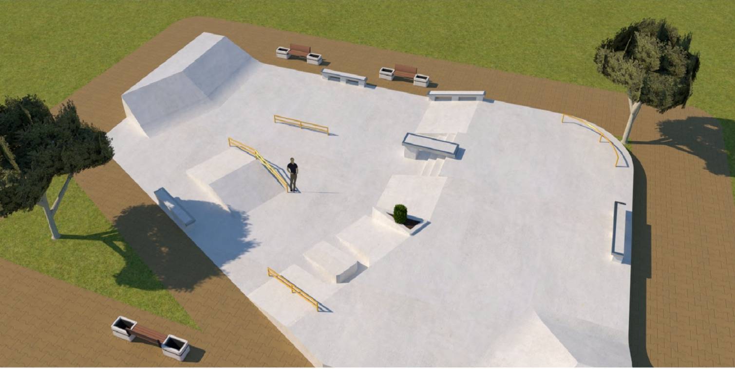 Навпроти Голосіївського проспекту, 102-100/2 хочуть облаштувати скейт-парк. Зокрема, хочуть встановити напівкруглий і трикутний рейли, граіндобокси в різних варіаціях та інше.
