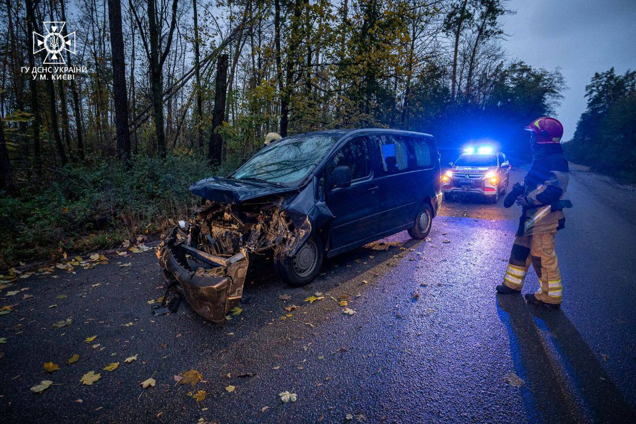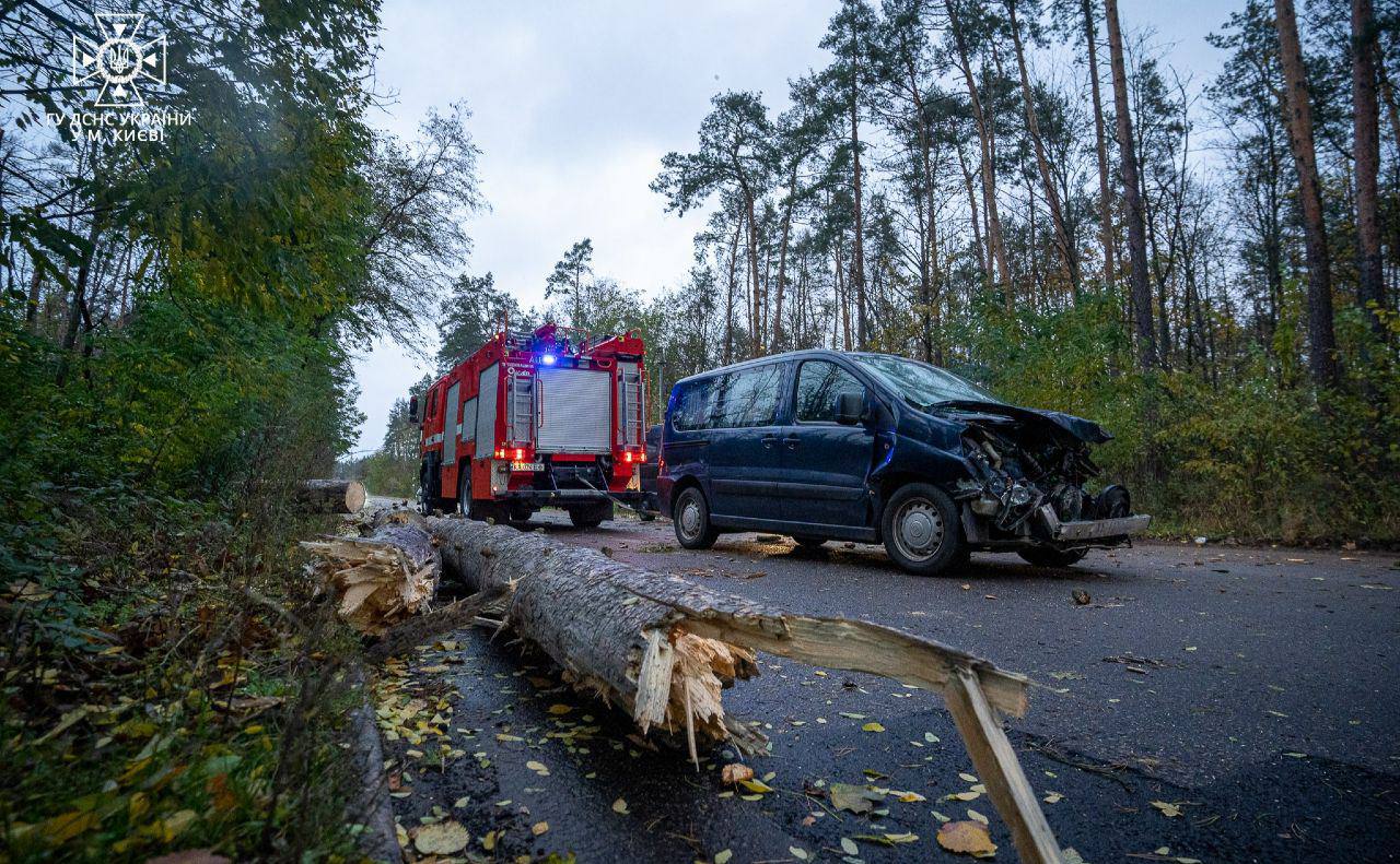 На проспекті Берестейському на автівку впало дерево. Людина, яка перебувала у транспортному засобі відмовилась від госпіталізації.
