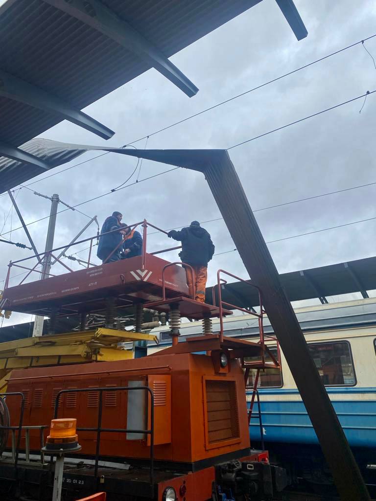 Також вітер пошкодив приміський вокзал у Києві. «Укрзалізниця» повідомляє, що приміські поїзди та Kyiv City Express прямують чітко за розкладом.