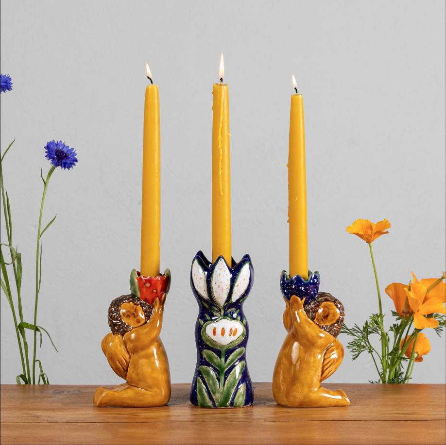 Для особливих моментів за святковим столом магазин красивих речей з українським характером підготував концептуальний набір свічників. Він складається із трьох виробів: це 2 підсвічники з ангелами та 1 — із квіткою.