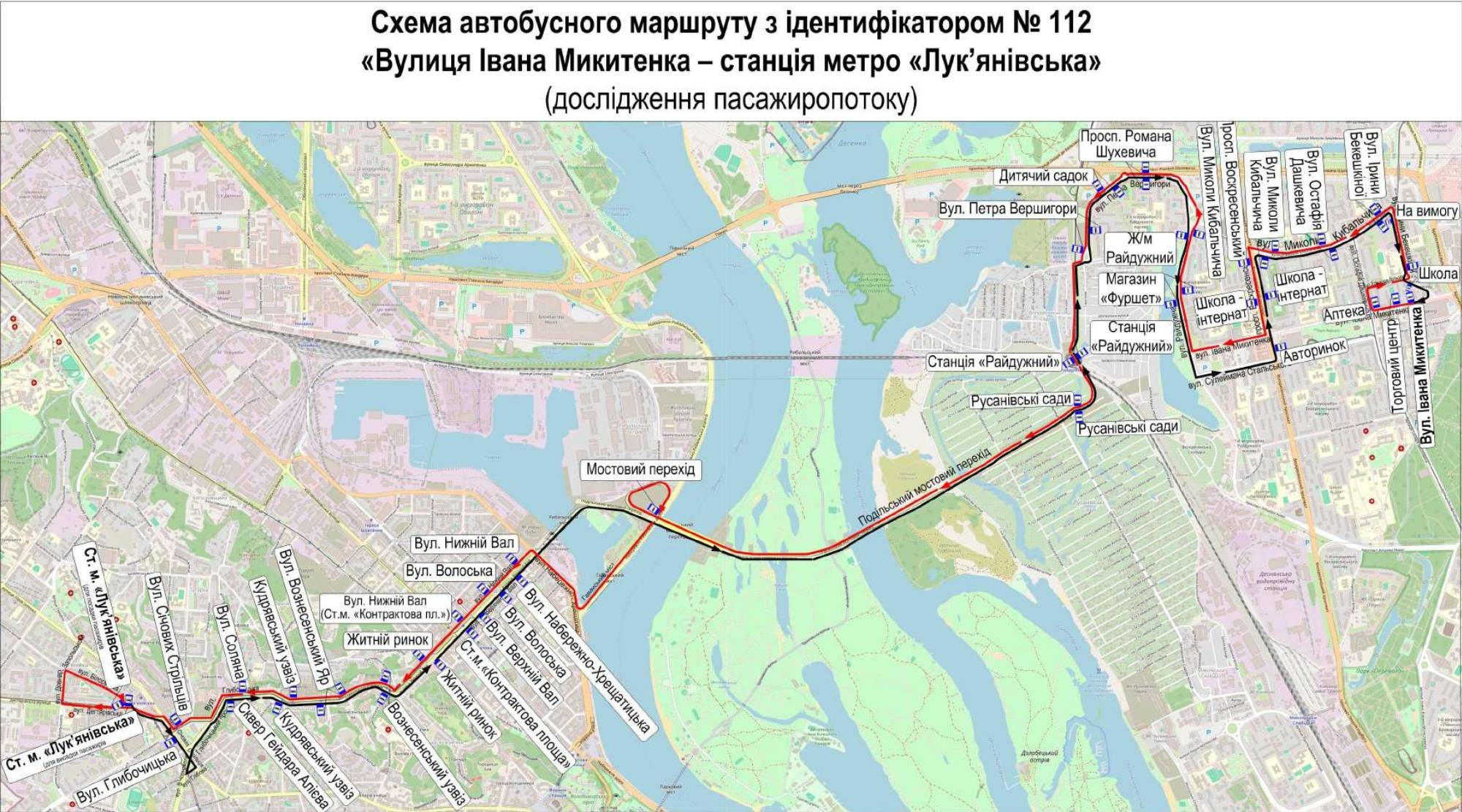 Та автобус № 112 (від вул. Івана Микитенка до ст. м. “Лук'янівська”).