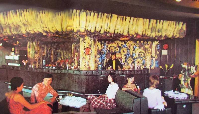 Ресторан “Маяк” збудували у 1979 році. На першому поверсі розміщувався бар “Нептун” із великим керамічним панно та декоративними керамічними плафонами. Панно виконувало одночасно функцію великого світильника — в декоративні елементи вкручувалися лампи. Автори панно — Є. Триколенко і В. Триколенко.