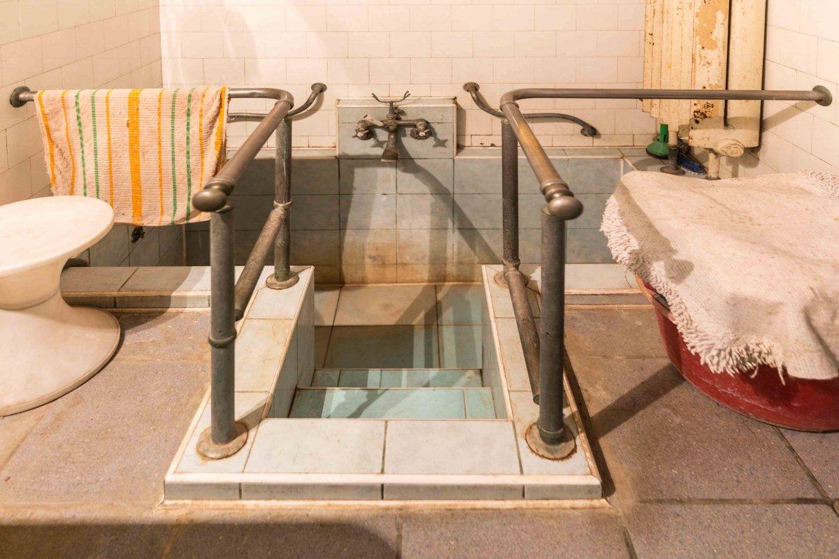 Ванна також мало змінилася за сто років. Котел для підігріву води фірми “Гермес” висить у недоторканому вигляді. Тут також збереглися сантехніка і умивальник.