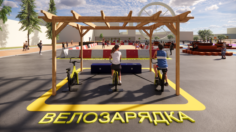 - Зручні місця для відпочинку: встановлять лавки, частина яких буде з розетками для зарядки пристроїв, а також великі кашпо для квітів і дерев.