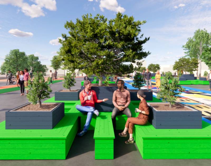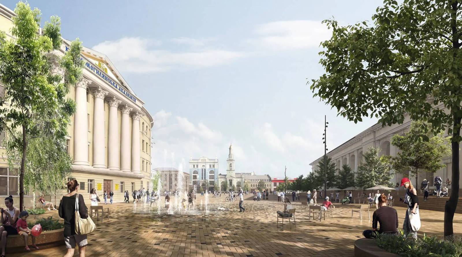 Мета реновації — перетворення Контрактової площі на динамічний, яскравий тимчасовий міський простір з травмочутливим дизайном для ветеранів і засобами для фізичної активності як для дітей, так і для дорослих.