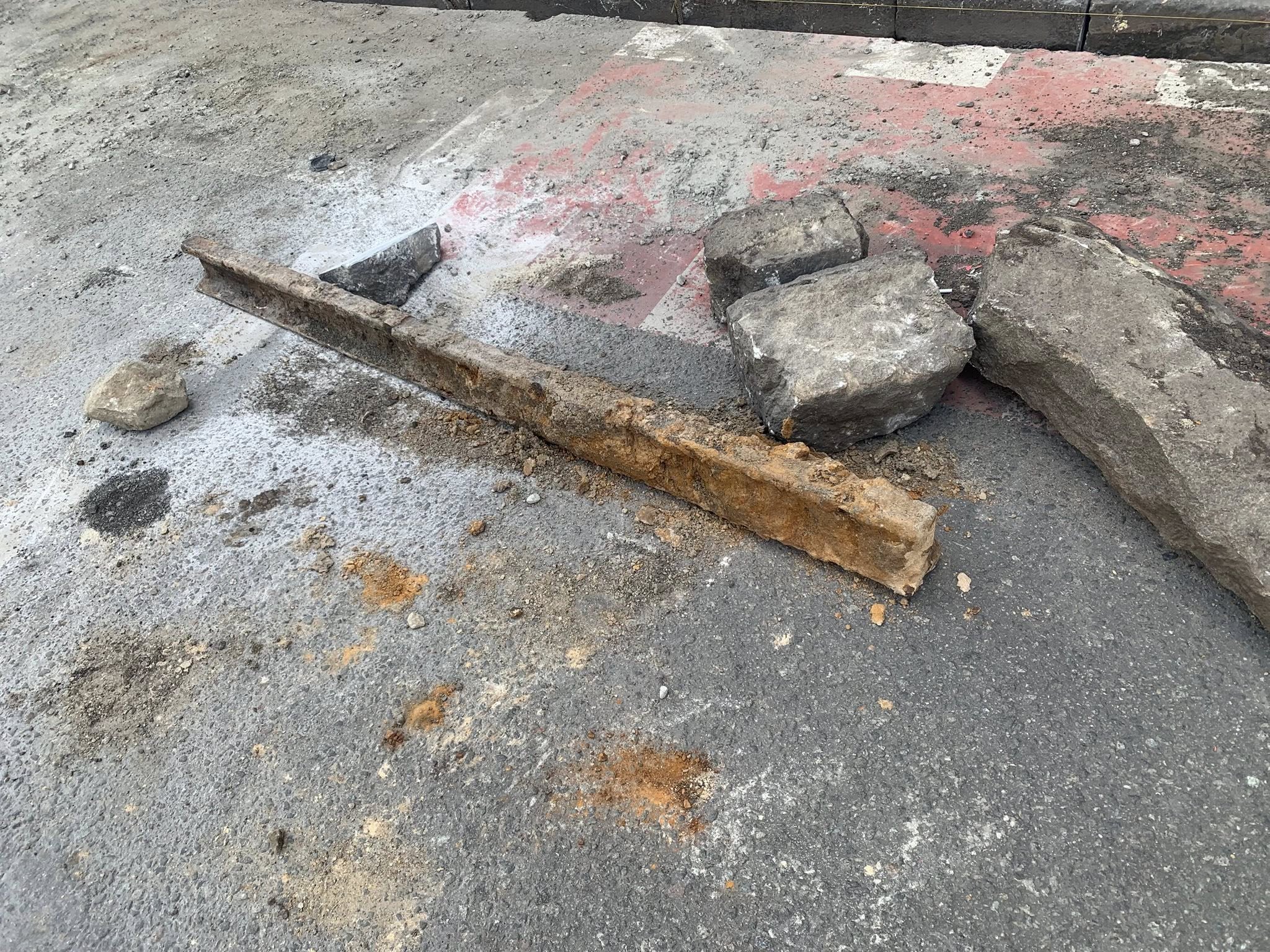 Під час ремонту дороги в районі Львівської площі комунальники знайшли історичну рейку, по якій курсував трамвай понад 100 років тому.