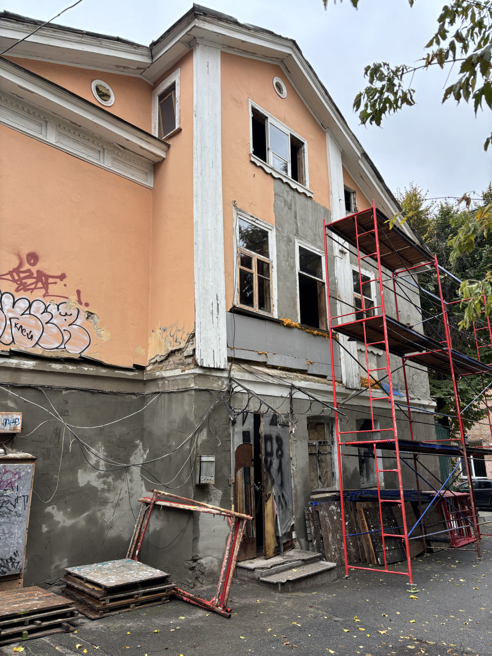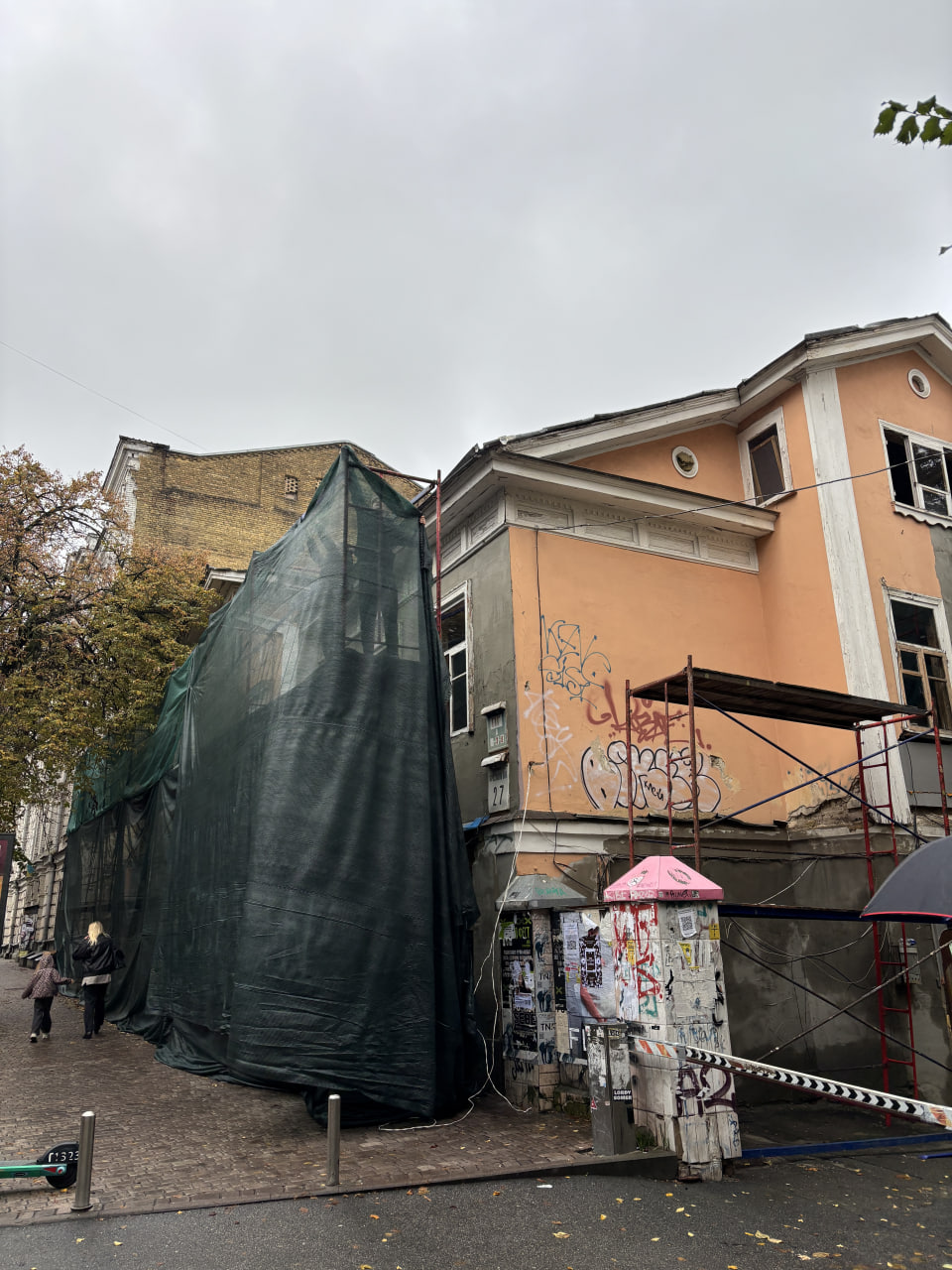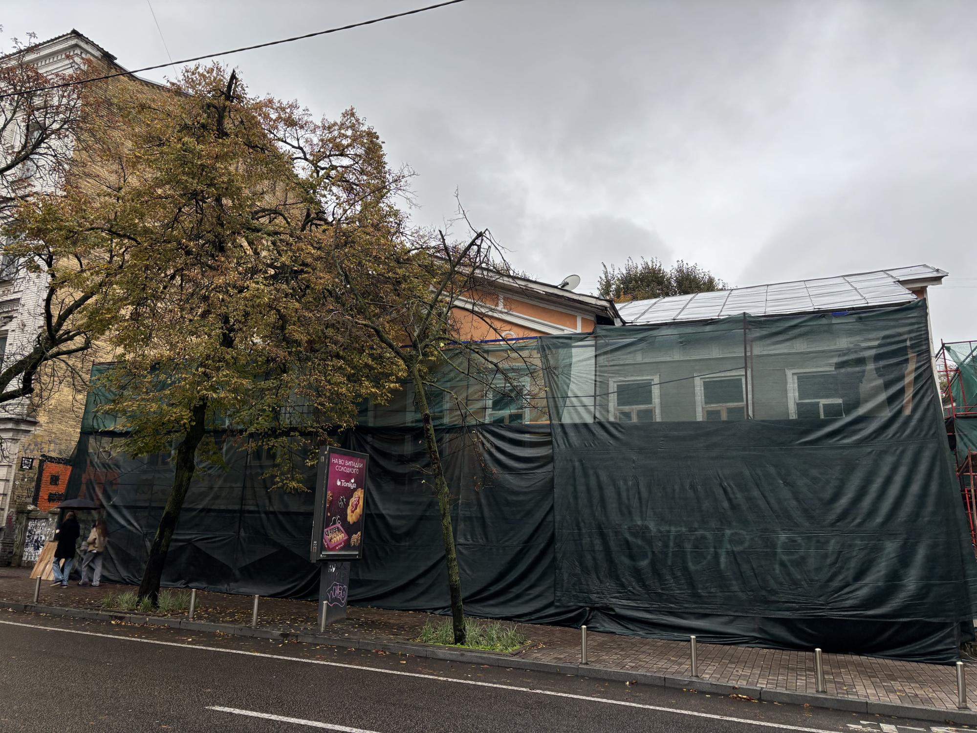 Днями активісти помітили, що всередині пам’ятки поновили незаконні роботи: завезли та встановили риштування. Попри судовий арешт та відкрите кримінальне провадження, будівельники продовжили руйнувати споруду, завісивши її будівельним сукном.