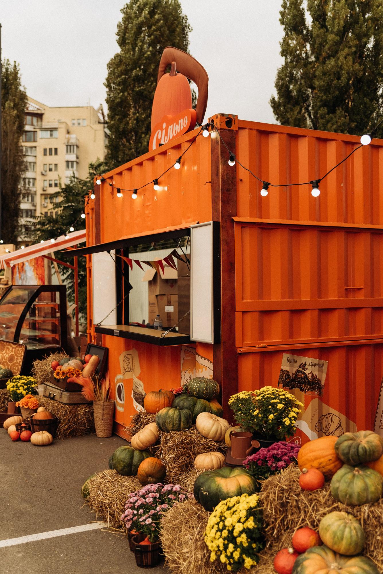 Подію організували на паркінгу супермаркету на проспекті Володимира Івасюка, 12П, і вона сімейна — з гарбузовим декором, розвагами для дітей та сезонною кухнею.
