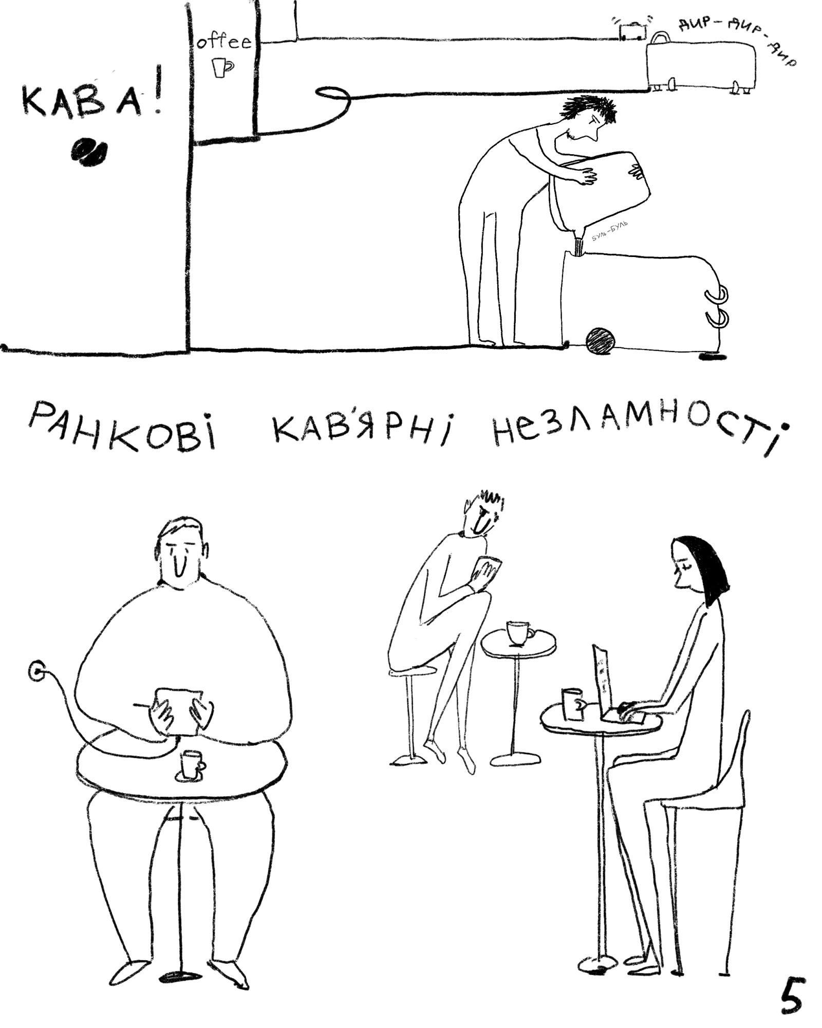 Чим займаються кияни, коли думають, що їх ніхто не бачить? Коміксистка Тетяна Кремень отримала від БЖ редакційне завдання — з’ясувати це й відтворити побачене в невеликому коміксі-віньєтці.