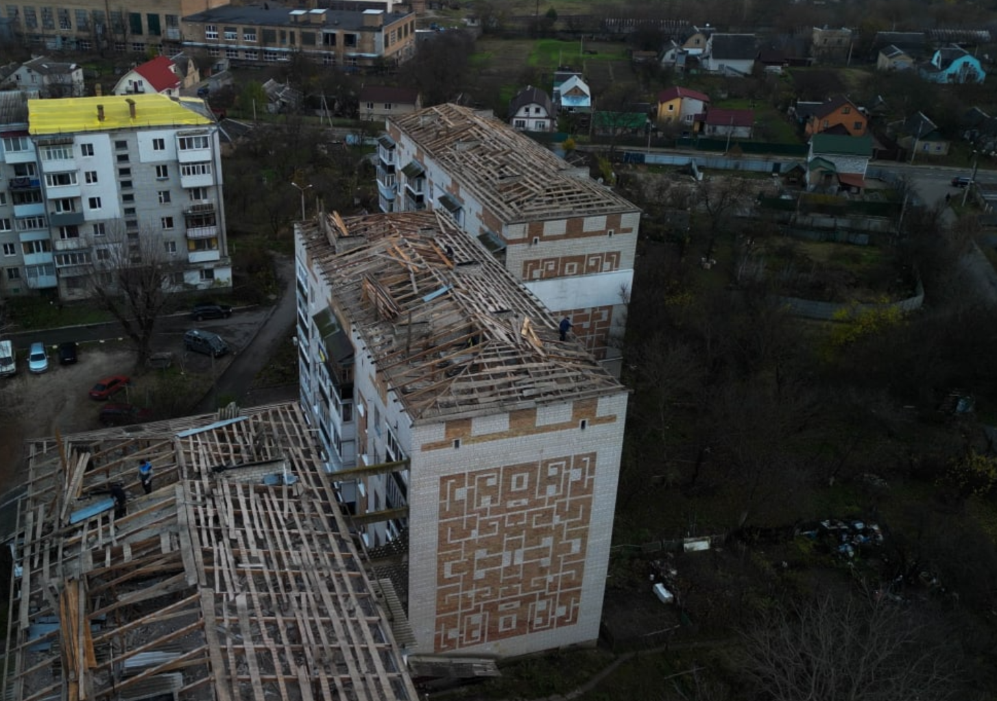 Будівельники лагодять пошкоджені ворогом багатоповерхівки щоденно, попри складні погодні умови та вимкнення електроенергії.