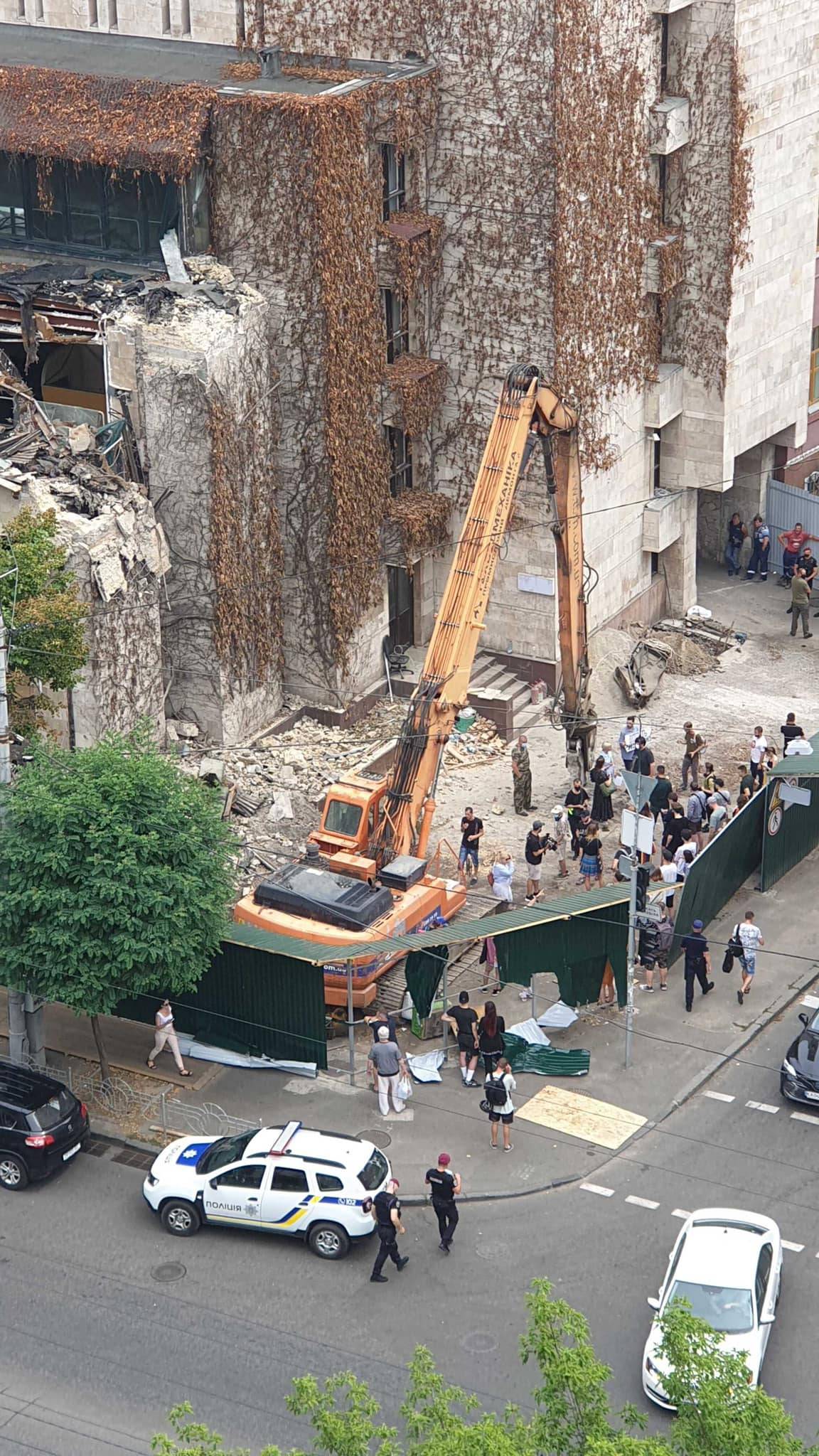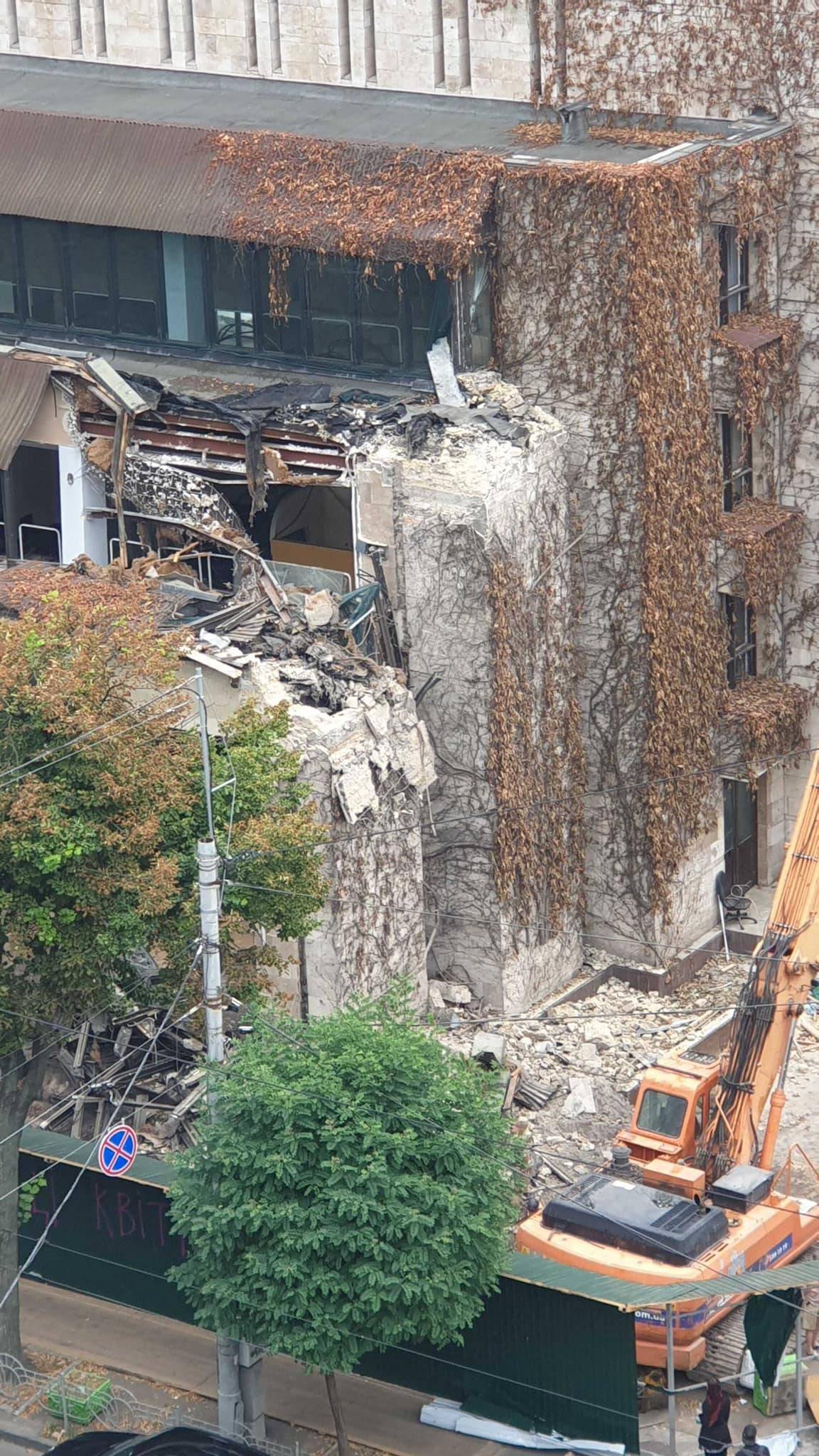 Сьогодні очевидці спостерігали, як техніка почала демонтувати будівлю. Нардеп Дмитро Гурін з місця подій зазначає, що наразі викликана поліція та відкривається кримінальне провадження, оскільки містобудівні умови і обмеження незаконні, а права на будівництво у власника немає.