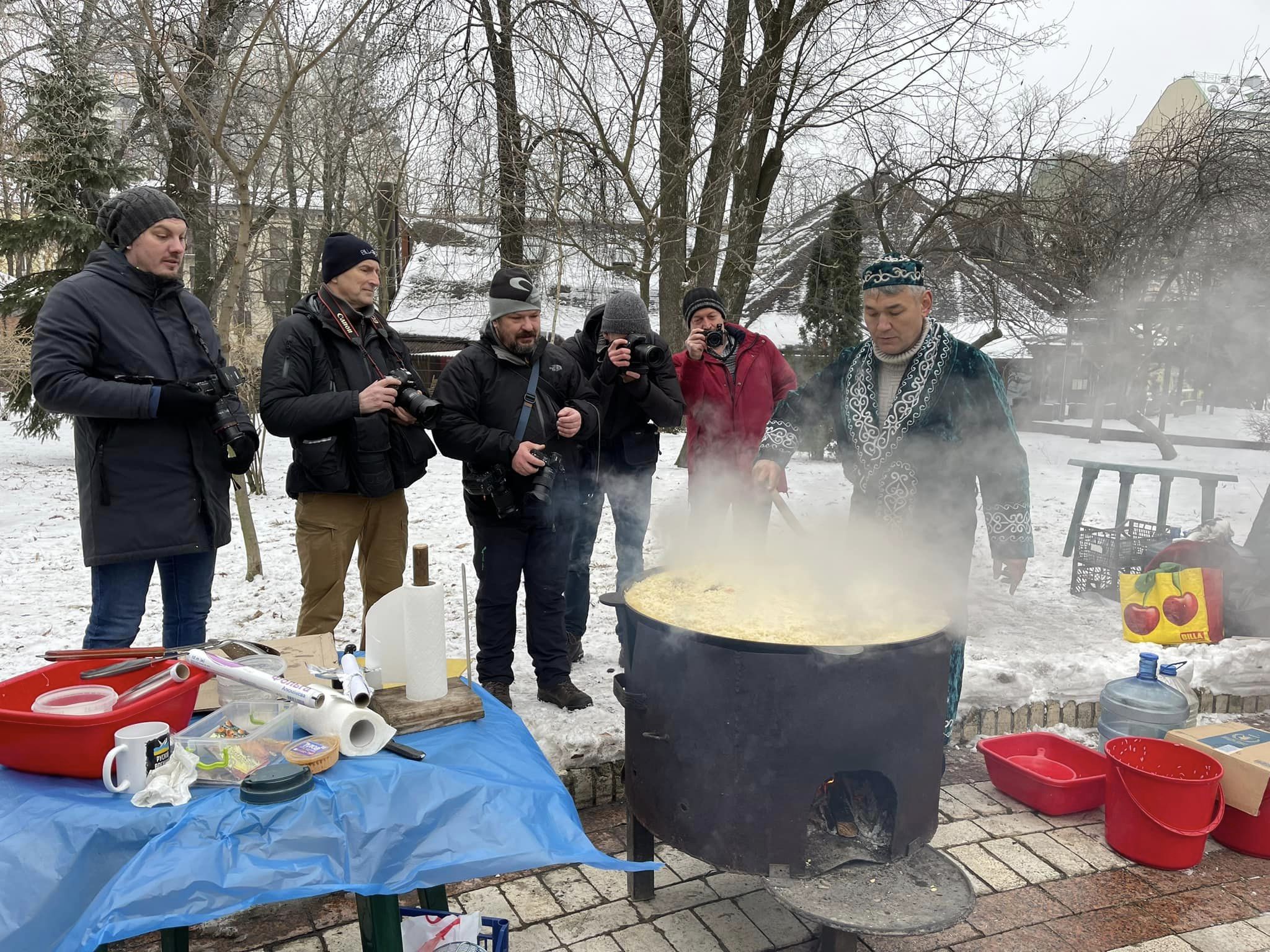 “Киян та гостей столиці пригощали смачним казахським пловом, баурсаками, кумисом, мандаринами, яблуками, та канапками з українським салом та оселедцем”, – пишуть організатори.