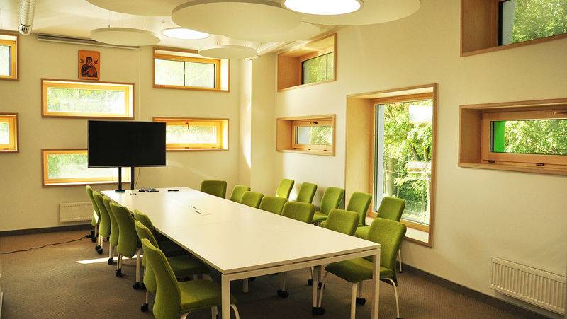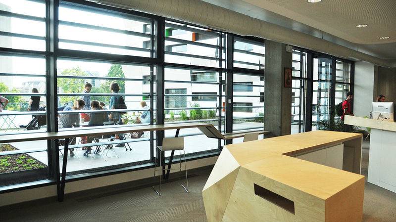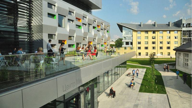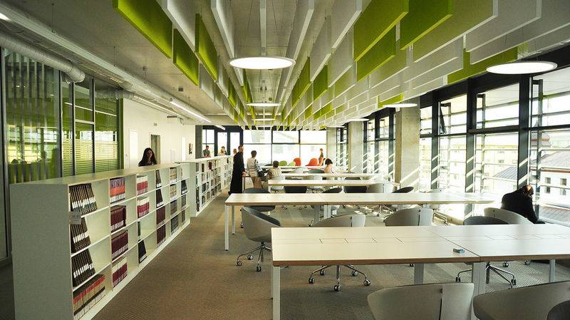 Тут розмістили сучасну бібліотеку, коворкінг, кафе, аудиторії з виходом на терасу, читальні зали, переговорні кімнати.
