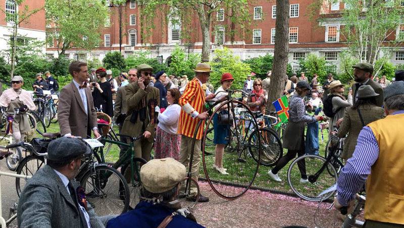 Но если говорить о фактах, то Tweed Run — это около тысячи потрясающе одетых гостей на старинных, чуть ли не музейных велосипедах. А вся программа — это велопарад. Да, с остановкой на чай, но все же. Мы в общей сложности ехали 7 часов. А на финише меня больше всего поразило то, что на этом все мероприятие и закончилось. Я как-то по привычке ждала, что начнется фестиваль и оставляла всю свою впечатлительность на финиш. Но мы приехали туда же, откуда и начался заезд — небольшой сквер возле паба, где уже все желающие могли просто ввзять себе коктейль. Организатор назвал победителей и мероприятие перешло просто в распитие тех самых коктейлей по 8 фунтов, что, конечно, вовсе не плохо.
