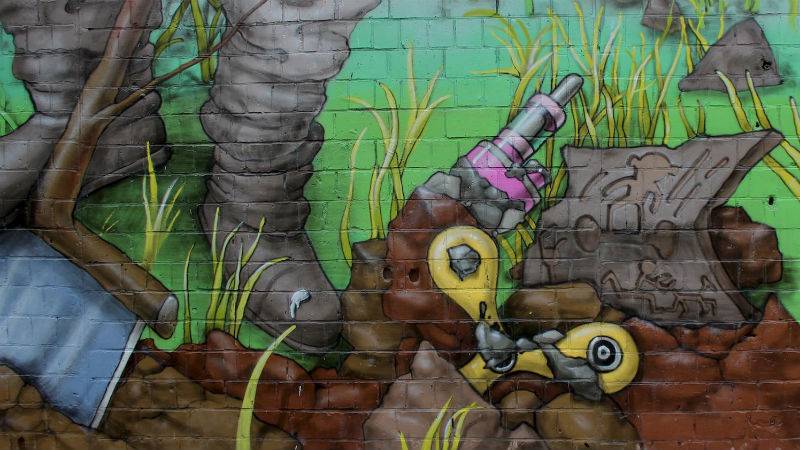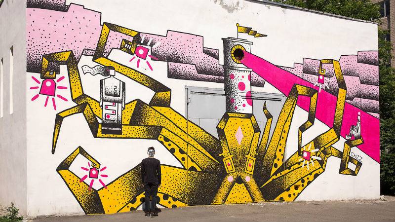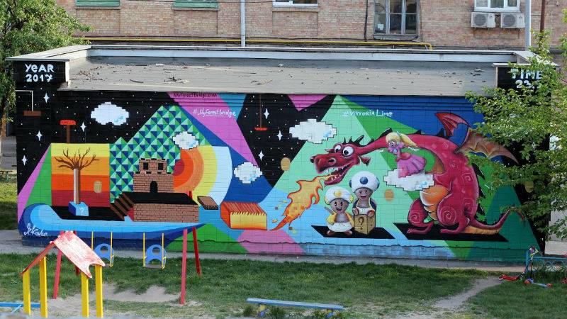Некоторые художники не ждут официальных разрешений и самовольно разрисовывают теплопункты. В марте-мае в районе Севастопольской и Соломенской площади появились три мурала Андрея My Forest Bridge и Виктории TL Лайм. Ребята говорят, что “приводят в порядок” район, в котором живут.