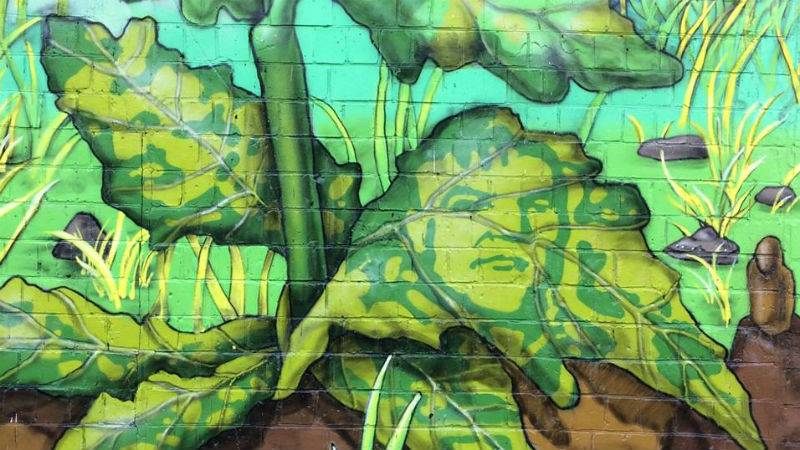 И, наконец, едва уловимый образ замаскирован в листьях большого цветка — если присмотреться, на одном из них есть очертания портрета маршала Малиновского, в честь которого именуется улица”, — объясняет художник на своей странице в Facebook.