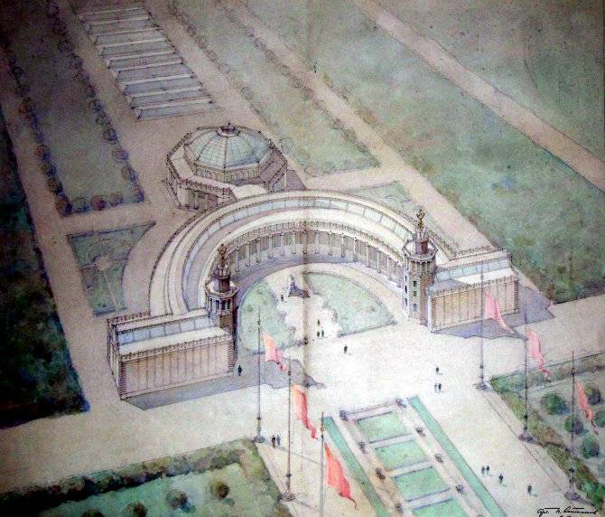Проект Заболотного так и не был воплощен. Единственное, что от него осталось в современной ВДНХ - памятник Мичурину. Но в 90-х он куда-то исчез.