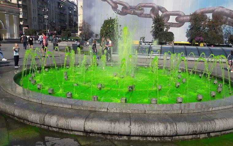 Уже кілька днів невідомі додають у київські фонтани зелений барвник. Комунальникам доводиться вимикати їх, зливати воду, чистити і обурюватися діями «зелених хуліганів».