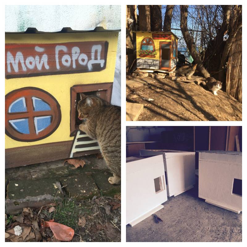 Це стосується й ідеї з облаштування теплих будиночків для котів. Перші з них з'явилися вже в січні, хоча проект не завершений і молоді люди продовжують збирати на нього гроші.