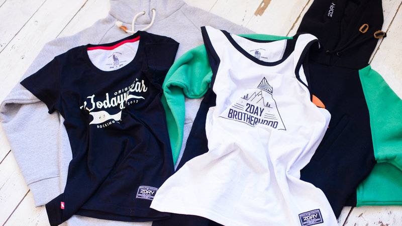 2DAY wear - це локальна марка спортивного одягу, заснована фанатами лиж і сноубордів. Хлопці випускають худі, світшоти і лижні куртки, а також футболки та майки. До зими в асортименті також з'являться нові моделі курток, лижні штани, теплі сорочки.