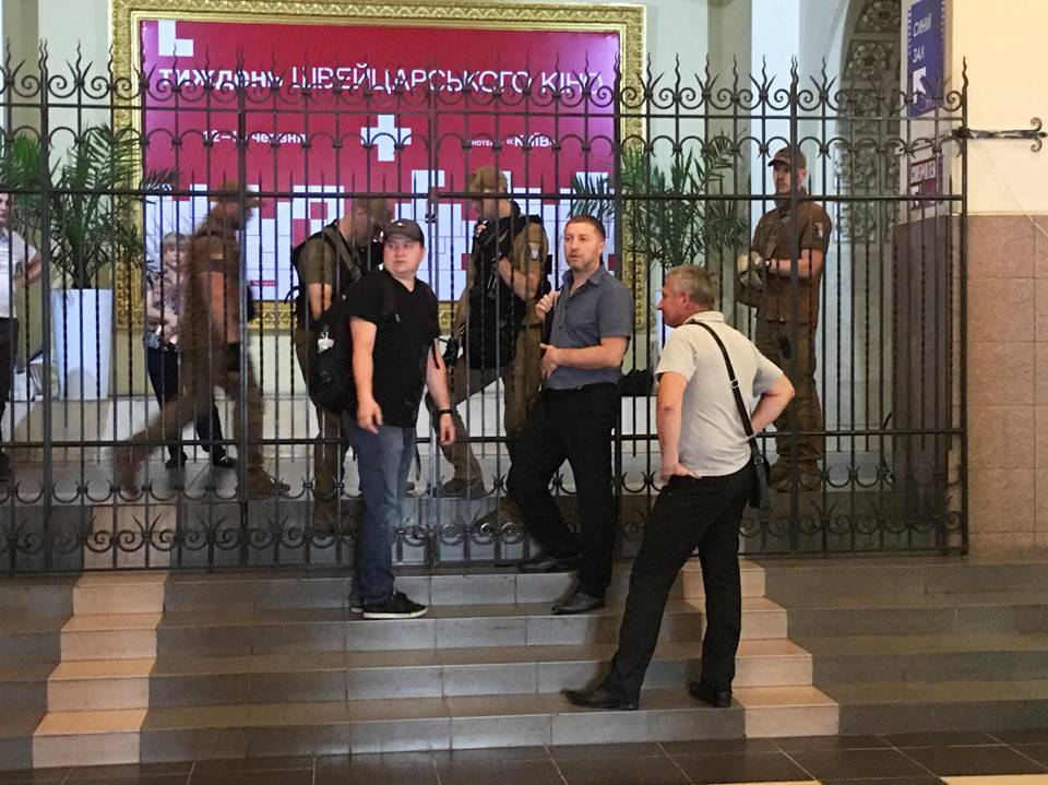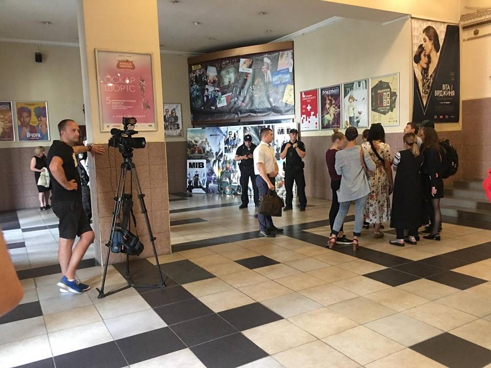 «Весь кінотеатр окупований людьми у військовому, перекрита решітка на другий поверх, нікого не пускають, двері офісні всі зламані», – повідомила вона.