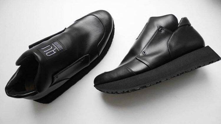 В новой весенней коллекции - третья модификация модели кроссовок Angularity. Внутренний носок - из тонкого неопрена, кожаный верх, подошва Vibram. Ручная работа.