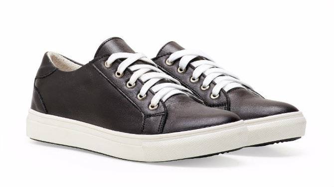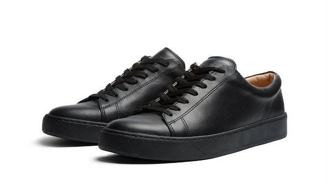 Еще один вариант весенней обуви - черные сникерсы Gemini Low Black. Для верха и подкладки используется натуральная кожа, облегченная подошва - из пористого каучука геометрической формы.