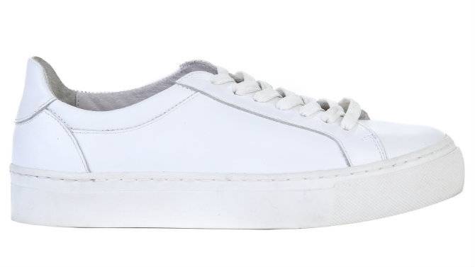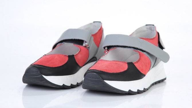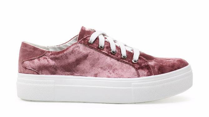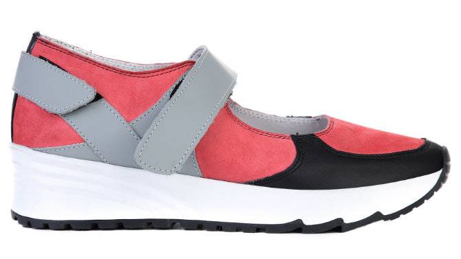 У марки много вариантов весенней обуви. Например, кроссовки со скрытой танкеткой, декорированные резинкой. Также есть розовые и бордовые кеды из бархата и классические белые и черные из кожи.