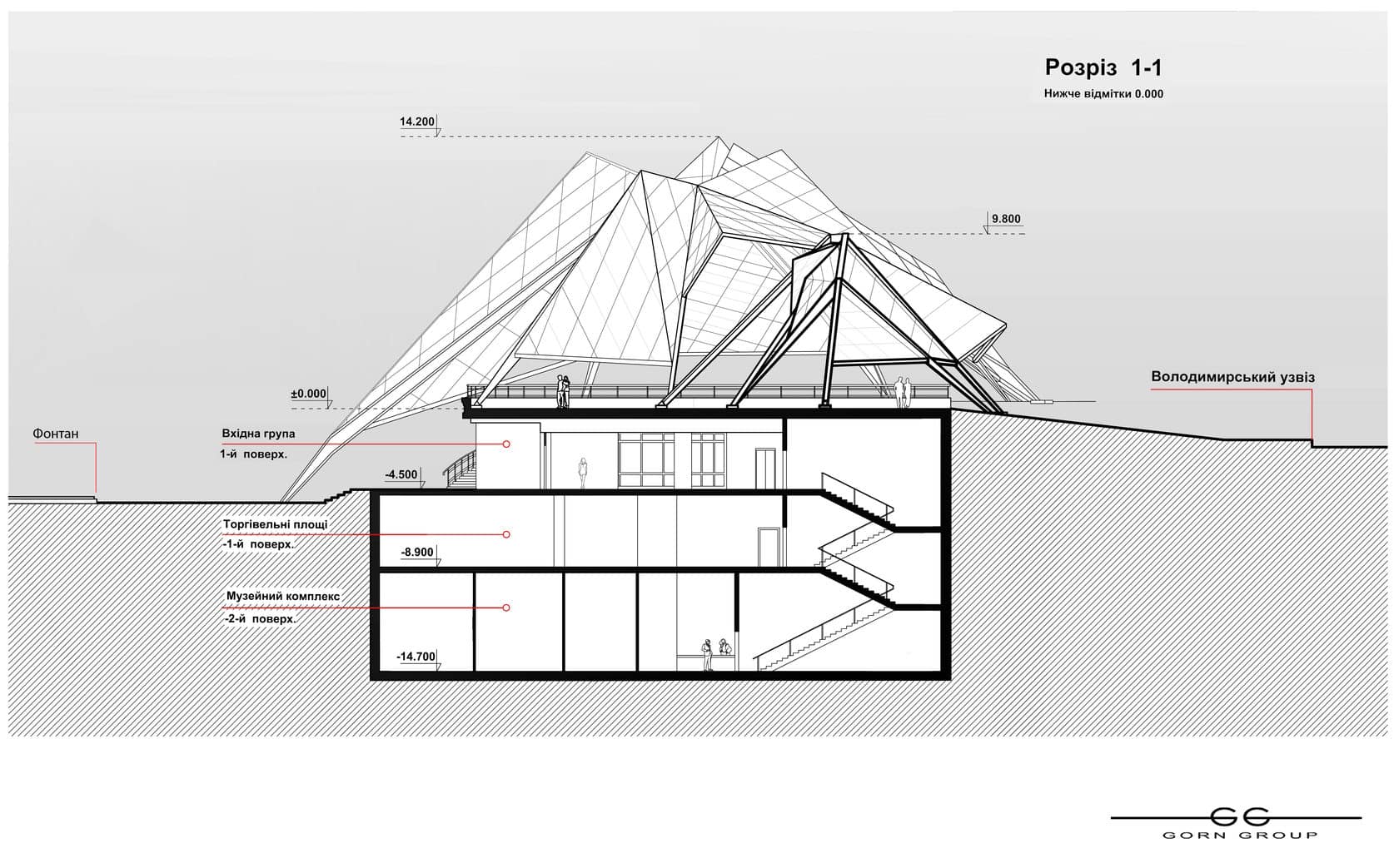 Як зазначається на сторінці конкурсу, «завданням проєкту було знайти розумний компроміс між історичною складовою – музеєм історії Києва та комерційною складовою – торговим центром».