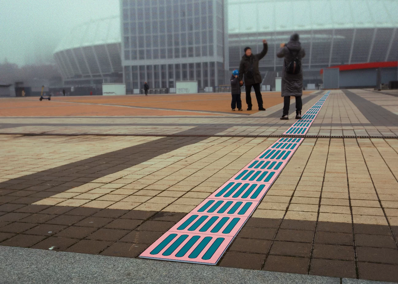 Щодо тактильної плитки, тут автори згадують, що на території поблизу НСК «Олімпійський», наприклад, не може бути комфортно людям з порушеннями зору, адже тактильна плитка скеровує напрям їх руху і попереджує про об'єкти на шляху, допомагаючи орієнтуватися в просторі.