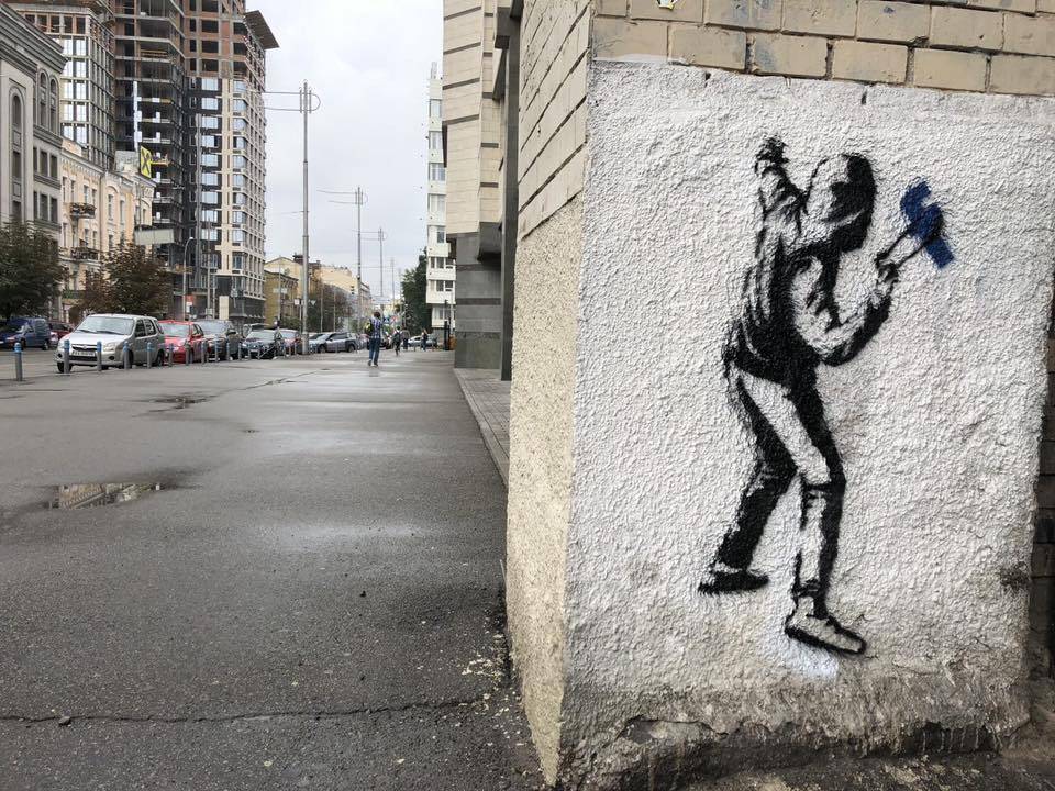 Роботи з'явилися в Києві після концерту гурту Massive Attack. За однією з теорій, саме фронтмен колективу Роберт Дель Ная і є загадковим художником Бенксі.