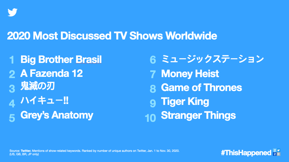 Серед популярних персон 2020 року, про яких найчастіше писали у Twitter виявилися: Дональд Трамп, Джо Байден, Джордж Флойд (афроамериканець, чиє вбивство викликало хвилю протестів Black Lives Matter), Кобі Брайант, Барак Обама, BTS, Нарендра Моді (прем'єр-міністр Індії), Каньє Вест, Ілон Маск і Камала Харріс (віце-президент США при Джо Байдені).We did it, @JoeBiden. pic.twitter.com/oCgeylsjB4